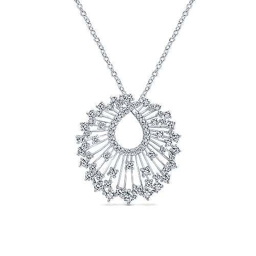 (856) 691-116418K WHITE GOLD WATERFALL SWIRL DIAMOND PENDANT NECKLACE